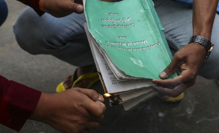 Myanmar’da darbe karşıtları ordunun hazırladığı 2008 anayasasını yaktı