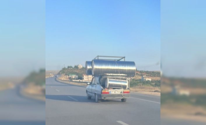 Dayanıklık ve yüksek çekişi nedeniyle sosyal medyada büyük ilgi gören bir otomobilin Gaziantep’te bagajından tavanına kadar yüklenen su depoları ile tehlikeli yolculuğu objektiflere yansıdı.