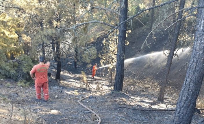 Yangın bölgesinde soğutma çalışmaları devam ediyor.