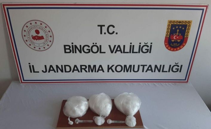 Bingöl İl Jandarma Komutanlığı Kaçakçılık ve Organize Suçlarla Mücadele Şube ekipleri tarafından uyuşturucu ve bağımlılıkla mücadele kapsamında çalışma yapıldı. Yürütülen istihbari çalışmalar neticesinde il merkezi ve ilçe sınırları içerisinde 3 ayrı adrese eş zamanlı operasyon düzenlendi. Operasyonda 3 şüpheli yakalanarak gözaltına alındı. Adreslerde yapılan aramalarda narkotik köpeği ‘Ezber’in tepki vermesi üzerine 1 milyon 350 bin TL değerinde toplam 3,5 kilogram metamfetamin maddesi ve 3 adet uyuşturucu kullanma aparatı ele geçirildi.