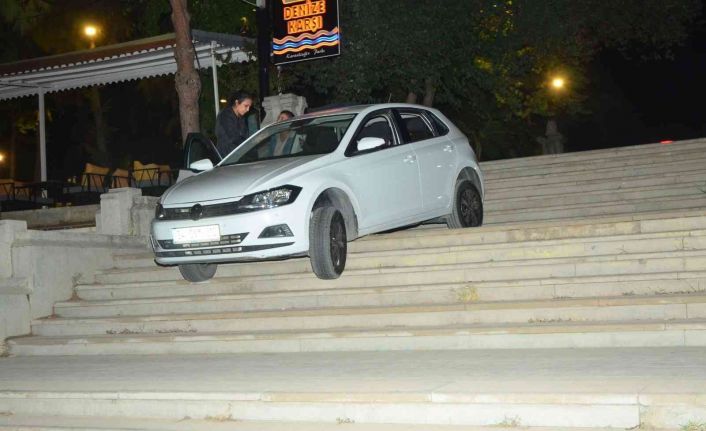 Edinilen bilgiye göre, olay, dün gece Muratpaşa ilçesi Karaalioğlu Parkı’nda meydana geldi. Parkın trafiğe kapalı bölümüne 34 DVM 310 plakalı otomobiliyle gelen E.T., iddiaya göre, aldığı alkolün de etkisiyle direksiyonu merdivenlere doğru kırdı. Vatandaşların yardım çabasına aldırmayan E.T, yavaş yavaş merdivenlerin bir bölümünden indi. Tamponundan zarar gören otomobil merdivenin ortasında asılı kaldı. Merdivene geldiğini anlayamayan sürücü, aracı zorlayarak ilerlemeye çalıştı. Çevre esnafının ihbarı üzerine olay yerine polis ekibi sevk edildi. Ekipler, E.T’yi otomobilden indirerek ekip aracına aldı. Polis ekiplerinin yaptığı alkol testinde, sürücünün 1,33 promil alkollü olduğu belirlendi.