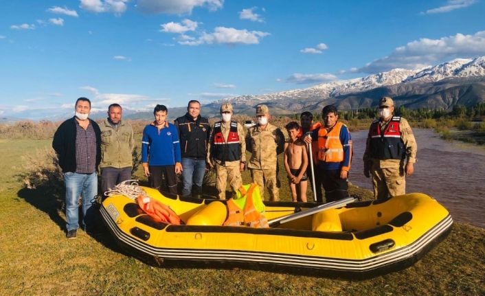 Erzincan’da suların yükselmesiyle birlikte nehrin ortasındaki adacıkta mahsur kalan çocuk, AFAD ve jandarma ekipleri tarafından botla kurtarıldı.