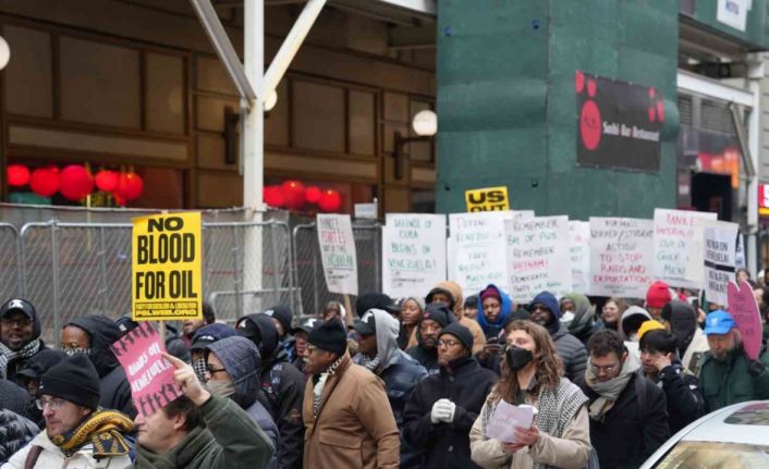 ABD’nin Venezuela’ya yönelik saldırısının ardından New York’taki Times Meydanı’nı dolduran binlerce kişi, ABD yönetimine askeri müdahaleye son verilmesi çağrısında bulundu.