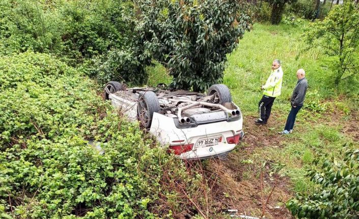 Samsun’da kendi nişan törenine giderken aracıyla yoldan çıkarak takla atan damat adayı emniyet kemeri kemeri sayesinde kazayı yara almadan atlattı.