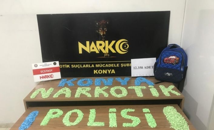 Konya’da narkotik polisinin yaptığı operasyonda okul çantası içerisinde 12 bin 350 adet uyuşturucu hap ele geçirilirken, 3 kişi gözaltına alındı.