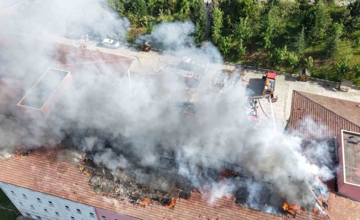 Kocaeli’nin İzmit ilçesinde bir lisenin çatısında çıkan yangın söndürüldü. Çatı kullanılamaz hale gelirken, okul havadan görüntülendi.