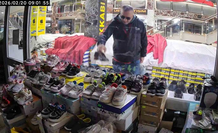 Elazığ’da bir şahıs, ayakkabı mağazasında beğendiği ayakkabıyı poşetin içerisine koyarak mağazadan ayrıldı. O anlar güvenlik kamerasına yansıdı.