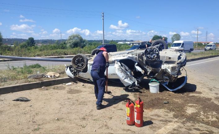 Sakarya’nın Karasu ilçesinde ’patpat’ olarak tabir edilen tarım aracına çarpıp kontrolden çıkarak refüjdeki direğe çarpan otomobil takla attı. Kazada 4 kişi yaralandı.