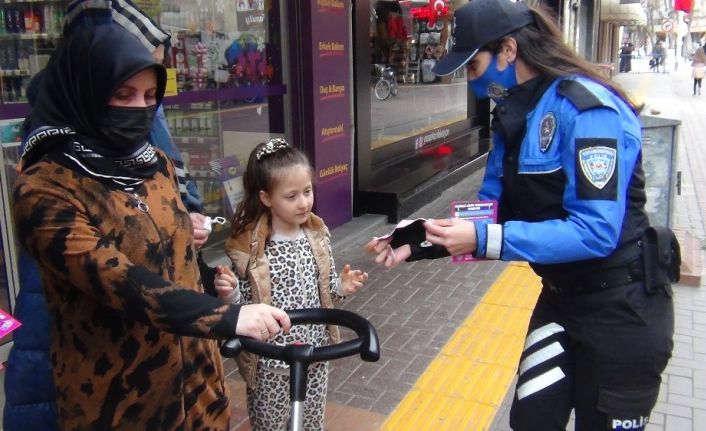 İnegöl Emniyet Müdürlüğü Toplum Destekli Polislik Büro Amirliği ekipleri, koronavirüsle mücadele kapsamında ilçenin en kalabalık cadde ve sokaklarda çocuklara maske ve broşür dağıttı.