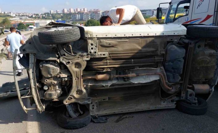Samsun’da önündeki araca çarpan otomobilin devrildiği kazada sürücü yaralandı.