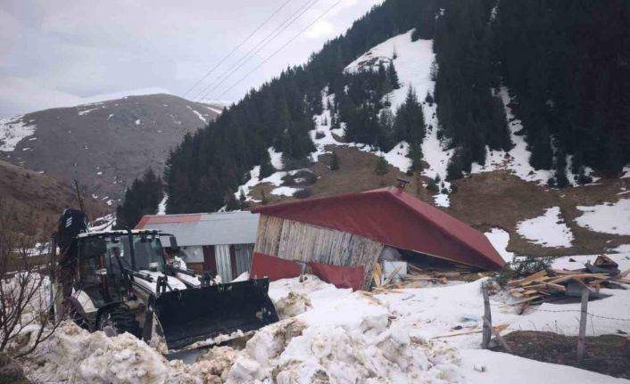 Ordu’nun Kabadüz ilçesinde yaylaya çığ düşmesi sonucu tek katlı ahşap ev zarar gördü.