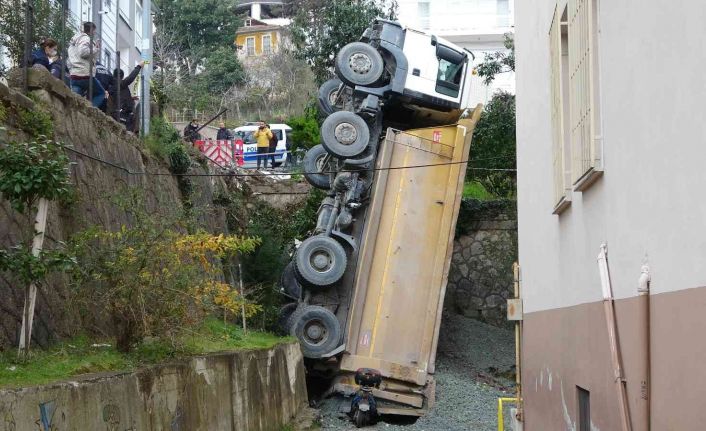 Ordu’da, çakıl yüklü hafriyat kamyonu, rampada duramayıp geri kayınca bir okulun arka bahçesine uçtu. Arka damperinin üzerinde dikilen kamyonun sürücüsü yaralanırken, öğrencilerin o sırada derste olması ise ihtimal bir facianın önüne geçti.