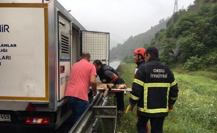 Fatsa ilçesi Yarlı Mahallesi Çalışlar mevkisi Samsun-Ordu kara yolu bölgesinde uçurumdan yuvarlanan köpek, Ordu Büyükşehir Belediyesi İtfaiye Dairesi Başkanlığına bağlı ekipler tarafından kurtarıldı. İtfaiye ekipleri tarafından kurtarılan yaralı köpek ilk müdahalesinin yapılması için Büyükşehir Belediyesi veterinerlerine teslim edildi. Yaralı köpeğin tedavisinin devamı için ekipler, Ordu Büyükşehir Belediyesi hayvan barınağına götürdü.