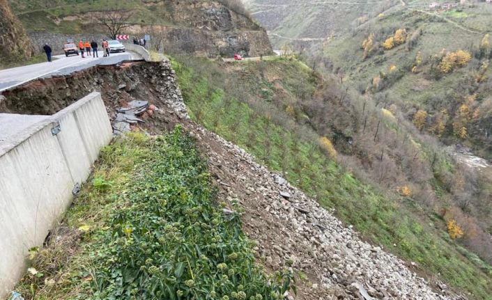 Ordu’da heyelan nedeniyle iki ilçeye ulaşım tek şeritten sağlanıyor.