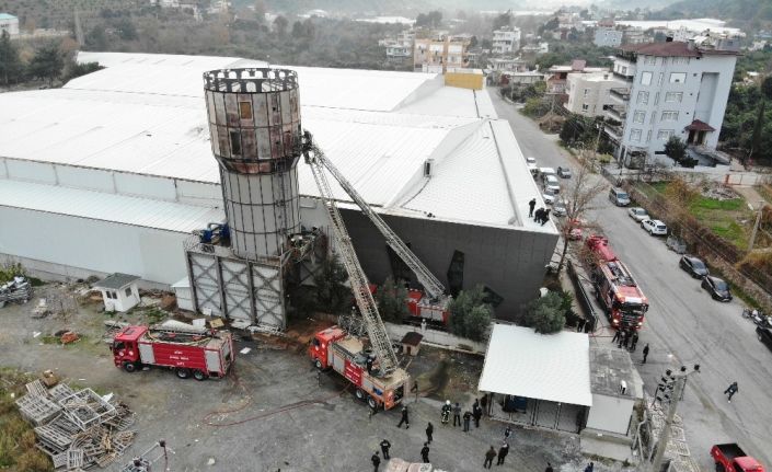 Antalya’nın Alanya ilçesinde orman ürünleri fabrikasının toz emme silosunda çıkan yangın itfaiye ekiplerinin müdahalesiyle büyümeden söndürüldü.