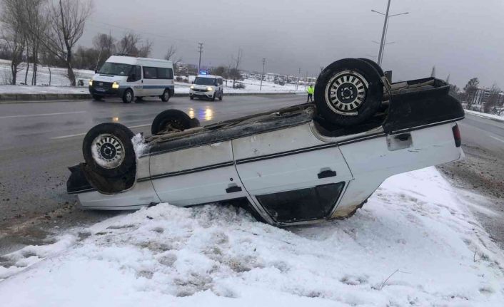 Çorum’da orta refüje çıkarak takla atan otomobilin sürücüsü yaralandı.