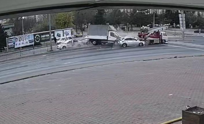 Kayseri’nin Kocasinan ilçesinde kırmızı ışıkta duramayan kamyonetin neden olduğu ve 1’i ağır 3 kişinin yaralandığı kaza güvenlik kameralarına yansıdı.