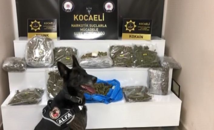 Edinilen bilgiye göre Kocaeli’de uyuşturucu sevkiyatı yapılacağı bilgisine ulaşan polis ekipleri, şüpheli bir cipi takibe aldı. Osmangazi Köprüsü girişinde durduran 34 SZ 6001 plakalı Renault marka cipte Narkotik ekipleri, narkotik köpeği Alfa ile arama yaptı. Aramalarda aracın bagaj kısmında valiz içerisinde 12 paket halinde 8 kilo 900 gram esrar (skunk), 113 gram kokain maddesi ele geçirildi. Olayda araç sürücü gözaltına alınarak emniyete götürüldü.