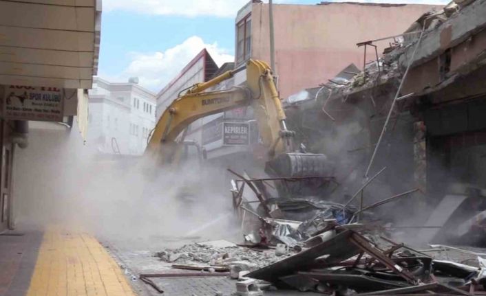 Bina çevresinde ve cadde üzerinde alınan güvenlik önlemlerinin ardından iş makineleriyle kontrollü olarak yıkıma başlandı.
