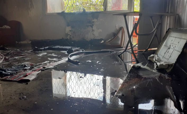Ekipler tarafından söndürülen evde soğutma çalışmaları devam ederken polis ekipleri yangınla ilgili inceleme başlattı.