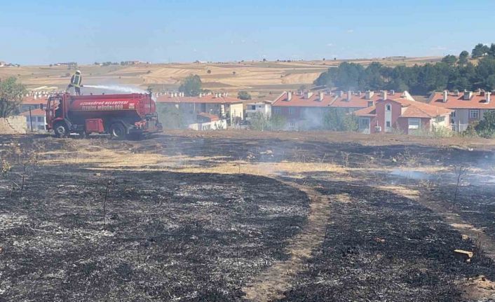 Edirne’nin Uzunköprü ilçesine bağlı Mescit Mahallesi’nde tarlada başlayan yangın, rüzgarın da etkisiyle hızla büyüyerek otluk ve çalılık alana sıçradı. Yangını gören vatandaşların ihbarı üzerine bölgeye itfaiye ekipleri sevk edildi. Yangın, yakındaki evlere sıçramadan ekiplerin 40 dakikalık müdahalesiyle söndürüldü.