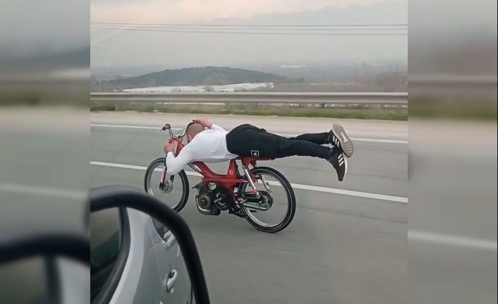 Edinilen bilgiye göre, kimliği bilinmeyen sürücü motosikletinin üzerine yatarak 130 kilometre hız yaptı. Sürücünün hiçbir güvenlik önlemi almaması şaşkınlığa neden olurken, maskesini takmayı ihmal etmeyen plakasız motosiklet sürücüsü, diğer araçtakiler tarafından cep telefonu kamerasıyla kaydedildi.
