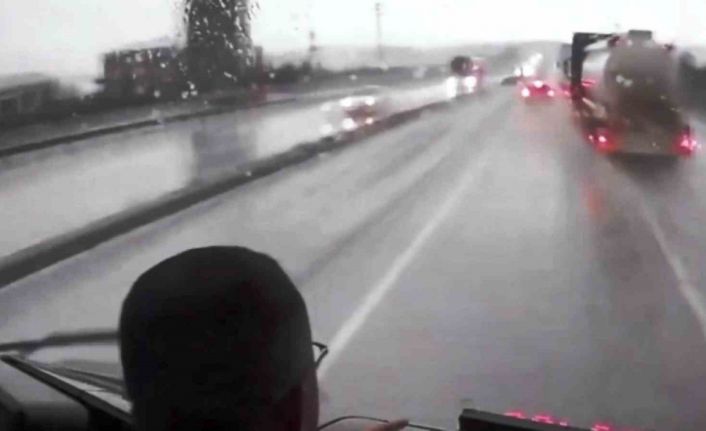 Yine Samsun’da araç içi kamerasına yansıyan bir olayda ise “kaza geliyorum” dedi. Yağmurlu bir günde trafikte seyir halinde olan bir otomobil sürücüsü, aniden yola atlayan otomobil sürücüsünün videosunu paylaşarak, “Yerler ıslak, arabalar eski. Duramazsam ikimiz de perişan olmuştuk. Ufak bir eğitim almanı öneririm. Görmediğin yola çıkma” ifadelerini kullandı.