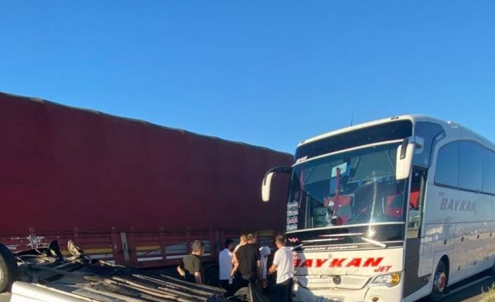 Otobüsün önüne kırdı, takla atarak sürüklendi: 4 yaralı