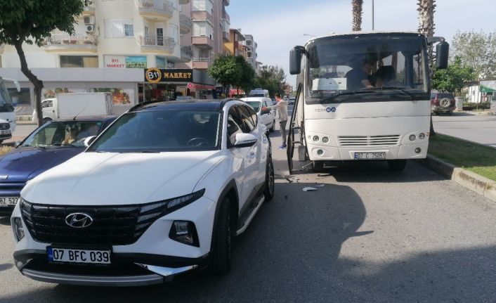 Antalya’nın Manavgat ilçesinde kapısı açık seyreden servis otobüsü, kırmızı ışıkta bekleyen otomobile çarptı. Otobüs kapısı koparken otomobilde hasar oluştu.