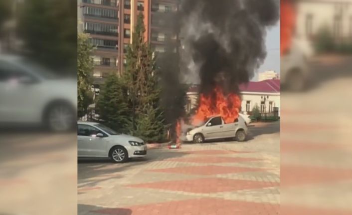 Kahramanmaraş’ta bir site bahçesinde park halindeki otomobil alev alev yandı.