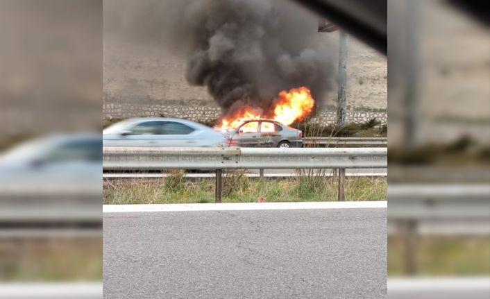 Adana’da otoyol üzerinde bir otomobil alev alev yandı.