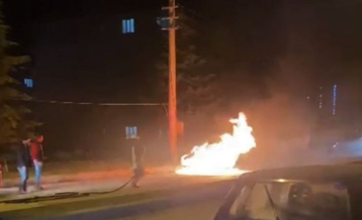 Otomobil alev alev yandı, sürücü son anda kurtuldu