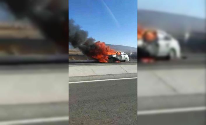 Isparta Şarkikaraağaç karayolunda sürücünün direksiyon hakimiyetini kaybedip bariyerlere çarpması sonucu otomobil alev topuna döndü.