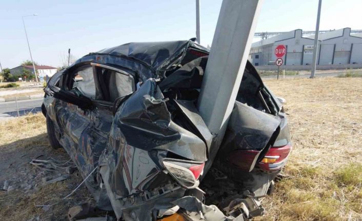 Edirne’de otomobilin direğe ok gibi saplandığı kazada 3 kişi yaralandı.