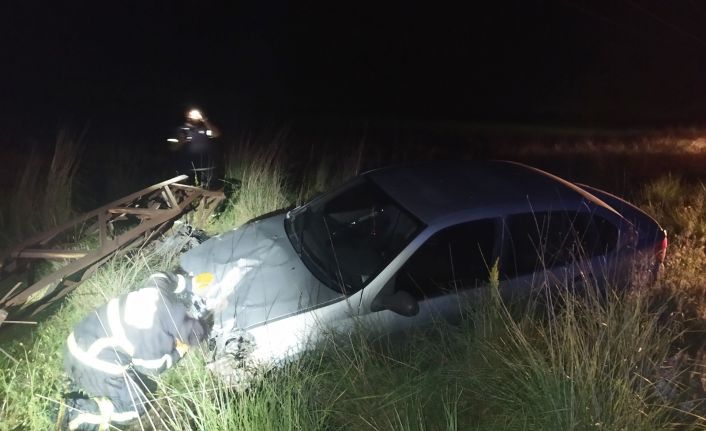 Tekirdağ’da önüne köpek çıkması üzerine sürücüsünün direksiyon hakimiyetini kaybettiği otomobil, yoldan çıkarak elektrik direğine çarptı.
