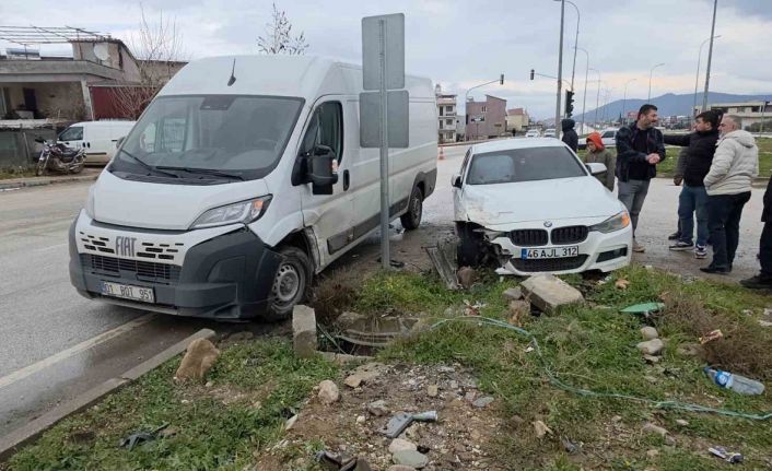 Hatay’da FİAT marka minibüs ile BMW marka otomobilin çarpıştığı kaza araç kamerasına yansıdı. Kazada minibüs sürücüsü yaralandı.