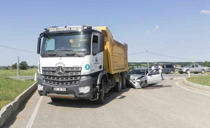 Tekirdağ’da kavşakta dönüş yapan kamyona arkadan çarpan otomobilin sürücüsü yaralandı.