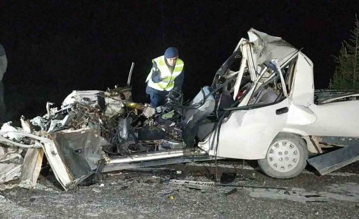 Uşak’ta civciv yüklü kamyona arkadan çarpan otomobil hurdaya dönerken araç içerisindeki 2 kişi hayatını kaybetti.