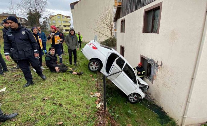 Kocaeli’nin Başiskele ilçesinde sürücüsünün kontrolünden çıkan otomobil, iki katlı binanın önce duvarına çarptı, ardından bahçesine düştü. Kazada yaralanan 3 kişi hastaneye kaldırıldı, evde de maddi hasar meydana geldi.