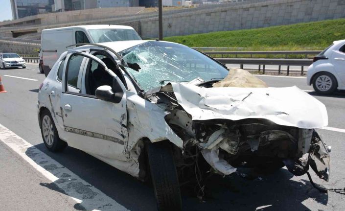 Kocaeli’de seyir halindeki otomobil, tır ile otobüsün arasında sıkıştı. Çarpmanın şiddetiyle hurdaya dönen otomobil içindeki 3 kişilik aile yaralandı.