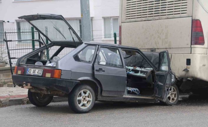 Konya’da otomobilin park halindeki otobüse çarpması sonucu 1 kişi yaralandı.