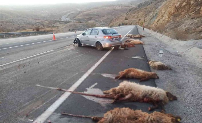 Malatya’nın Akçadağ ilçesinde otomobil sürüye çarptı. Kazada 18 koyun telef olurken, araçta da maddi hasar oluştu.