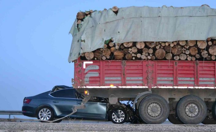 Konya’nın Kulu ilçesinde bir otomobil, tomruk yüklü tıra arkadan çarptı. Otomobil tırın dorsesinin altına girerken, sürücü ağır yaralandı.