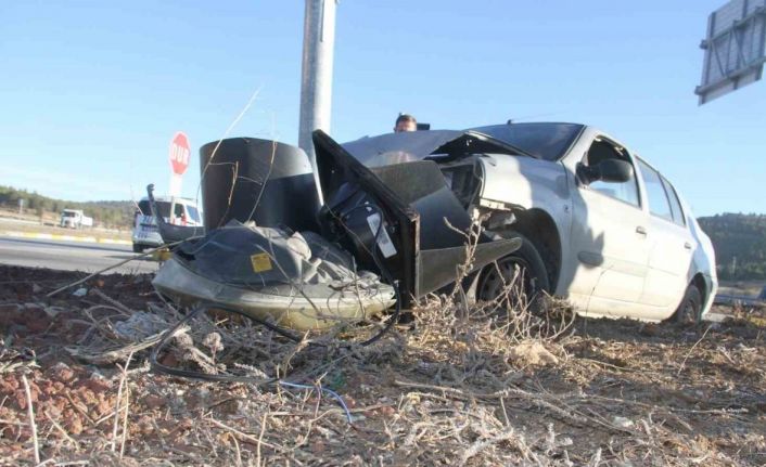 Otomobil trafik ışığı direğine çarptı: 2 yaralı
