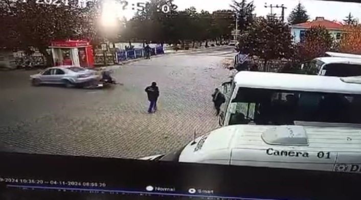 Olay, Bolvadin ilçesine bağlı Dişli beldesinde 4 Kasım günü meydana geldi. Edinilen bilgilere göre, U.K. (17) idaresindeki 03 AGG 257 plakalı motosiklet henüz belirlenemeyen bir sebepten ötürü sürücüsünün direksiyon hakimiyetini kaybetmesi sonucu kontrolden çıktı. Savrulan motosiklet daha sonra O.G.’nin kullandığı 48 NK 848 plakalı araca çarptı. Çarpmanın etkisi ile U.K., yaklaşık 10 metre sürüklendi. Çevredekilerin haber vermesi üzerine bölgeye jandarma ve sağlık ekibi sevk edildi. Ekipler U.K.’yi ambulansla Bolvadin Devlet Hastanesi’ne kaldırdı. Motosikletlinin şans eseri hafif yaralı atlattığı kaza anı ise güvenlik kameralarına yansıdı.