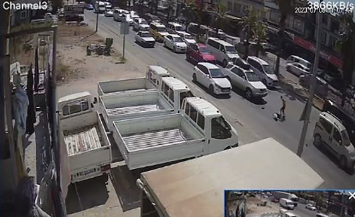 Antalya’nın Serik ilçesinde koşarak karşıdan karşıya geçmeye çalışan 2 çocuğa otomobil çarptı. Çocuklardan birisi ağır yaralanırken kazanı anı bir iş yerinin güvenlik kamerasına yansıdı.