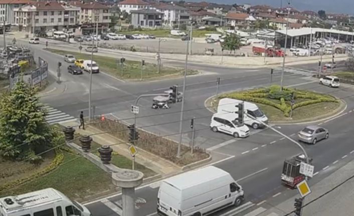 Düzce’de otomobilin motosiklete çarpması neticesinde meydana gelen kazada 1 kişi yaralandı. Kaza anı ise güvenlik kamerasına yansıdı.