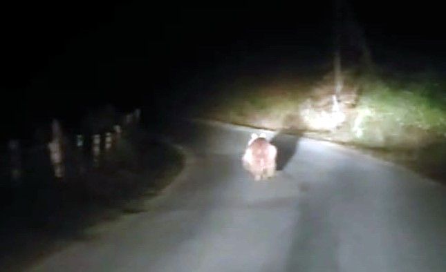 Ulus ilçesine bağı Kumluca beldesi Kirsinler köyünün girişinde seyir eden bir otomobilin önüne ayı çıktı. Ayı bir süre aracın önünde koşarken, araçta bulunanlar ise korna çalarak ve bağırarak ayıyı yoldan ormanlık alana doğru kaçması için çaba gösterdiği dikkat çekti.