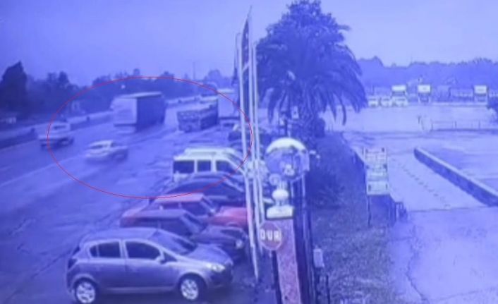 Samsun’da otomobilin yol kenarında park halindeki tıra arkadan çarpıp altına girerek sürücünün hayatını kaybettiği, 8 yaşındaki kızının da yaralandığı kaza anı bir iş yerinin güvenlik kamerasına yansıdı.