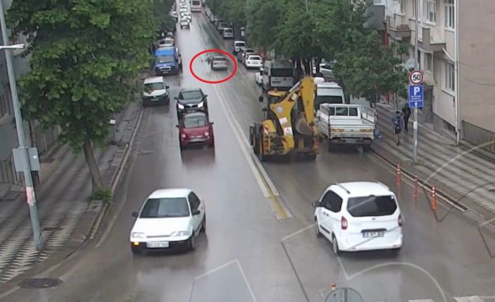 Eskişehir’de bir otomobilin yayaya çarptığı anlar, Kent Güvenlik Yönetim Sistemi (KGYS) kamerasına yansıdı.